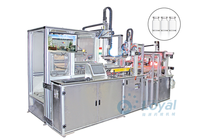 西林瓶生產(chǎn)線包括:自動(dòng)上管、自動(dòng)成型、經(jīng)機(jī)械手轉(zhuǎn)換至前端檢測(cè)線(也叫生產(chǎn)管控)、檢測(cè)線檢測(cè)的項(xiàng)目:1、瓶口內(nèi)外徑 2、瓶身長(zhǎng)短 3、瓶身外徑 4、瓶口邊厚 5、瓶底內(nèi)凹尺寸檢測(cè);經(jīng)檢測(cè)后的合格品再用機(jī)械手夾盤(pán)轉(zhuǎn)換至退火爐網(wǎng)帶上,經(jīng)高溫減除應(yīng)力后再降溫,通過(guò)氣動(dòng)吸盤(pán)將回火后的小瓶轉(zhuǎn)換至后端檢測(cè)線,后端檢測(cè)(也是重檢也叫終檢),經(jīng)后端拍照檢測(cè)項(xiàng)目 -